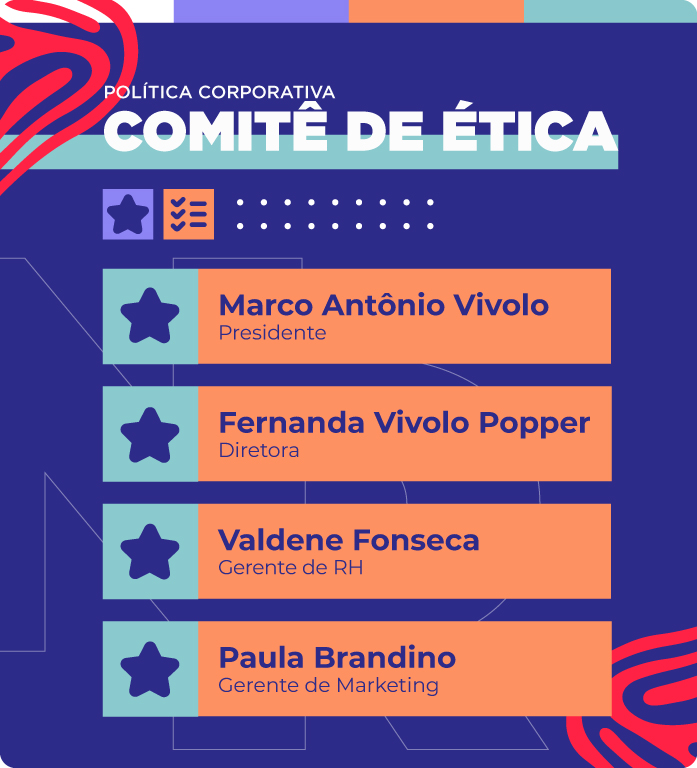 Nosso Comitê de Ética é formado por profissionais dedicados a garantir que nossos Valores e princípios sejam seguidos em todas as nossas atividades, além de promover uma cultura de ética e responsabilidade.